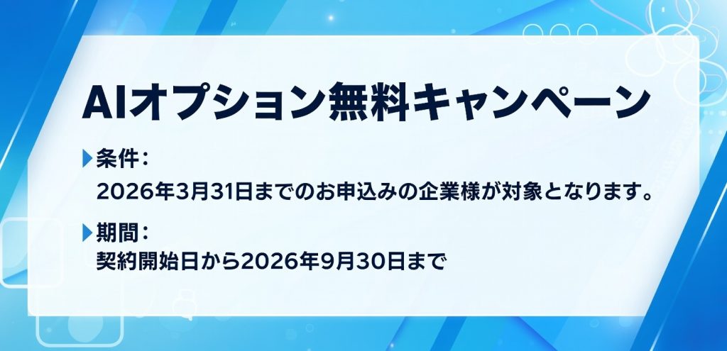 通常は有償となるAIオプション機能を、期間限定で無料でご提供いたします。