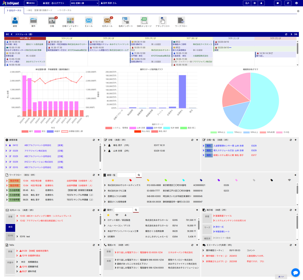 システムの基本となるログイン認証やダッシュボード、ユーザー管理などの基盤機能をベース機能に、無料で使えるグループウェア機能を提供します。
