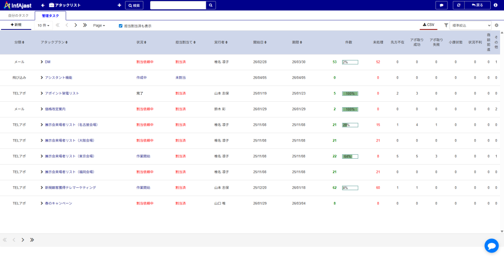 このアタックリストは、自分自身のアタックリストも作成できますが、マネージャの方が作成して配布も可能です。