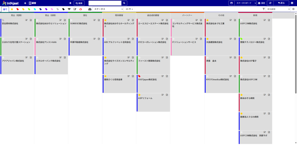 様々な区分をつけたり項目を付加する事ができますので、顧客データには付加価値が増し、強力な情報と化して営業活動に必要不可欠なものになります。