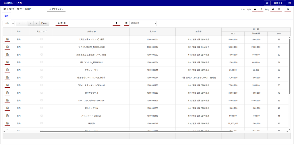 KPIシートは一括でインポート/エクスポートする事ができますのでメンテナンスも二次活用も自在です。